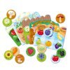 • Kompletní sada: Obsahuje 5 hracích polí a 30 barevných žetonů s obrázky ovoce a zeleniny.